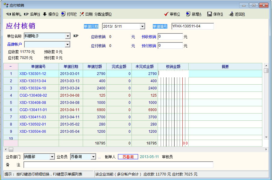讨论_可否增加一个一键自动核销等额应收应付金额的功能。_产供销