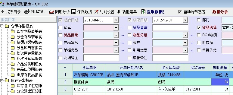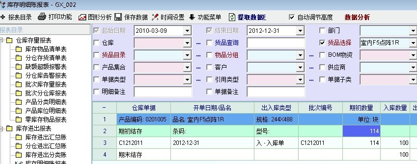 因為庫存明細報表的期初數是指查詢的起始日期時的結餘數.