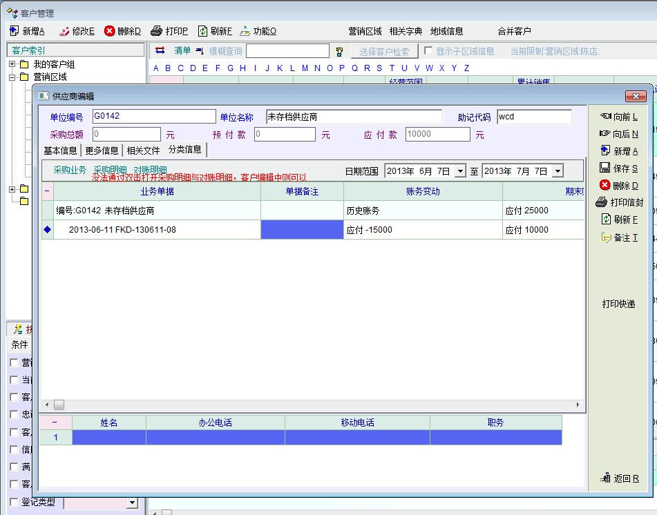 供应商编辑中无法通过双击打开采购明细、对账明细等单据