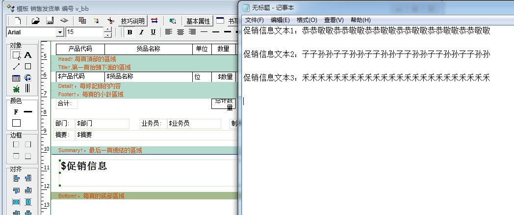 如图有没有办法在销售单或采购单中打印出预留的一些文本?比如促销信息。