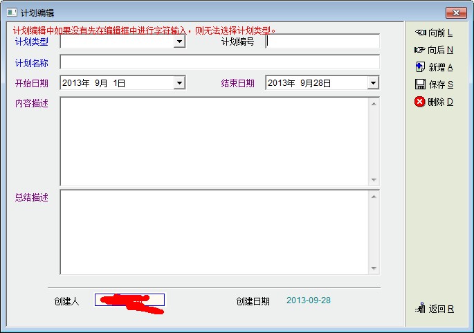 计划编辑中如果没有先在编辑框中进行字符输入,则无法选择计划类型。