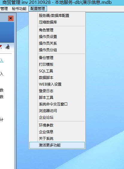 目前处于单机、access数据库不需要许可,所以那个菜单没有的。