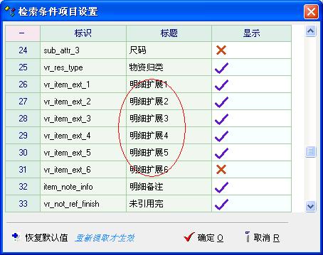 另外,有些检索条件的标题如“扩展明细”能够更改成用户自定义的项目名称,能大大方便用户操作。