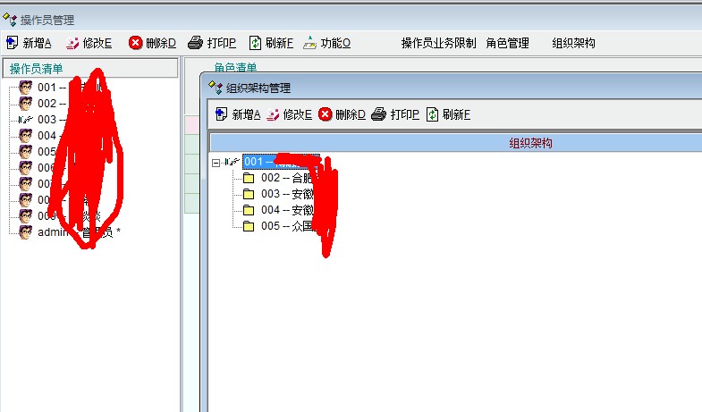 已经定义过操作员的组织机构了,用户信息里面也定义过组织机构了。但在操作员管理里面应该是显示组织机构,然后显示机构下面的用户。