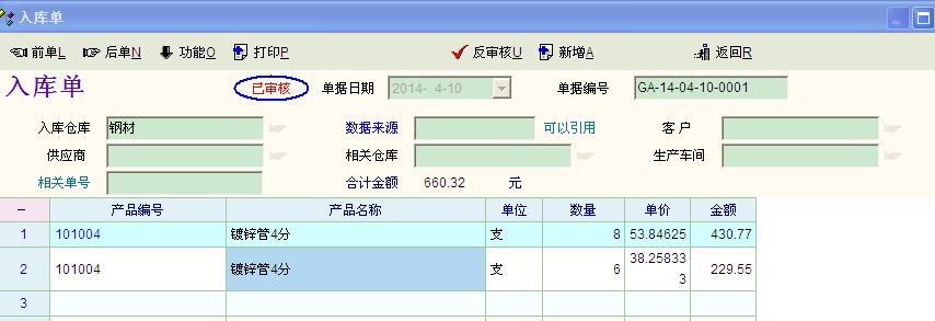 统计报表里显示 入库金额229.55元,入成本额为229.54元,