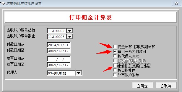 业务提成明细表-按账龄选择界面