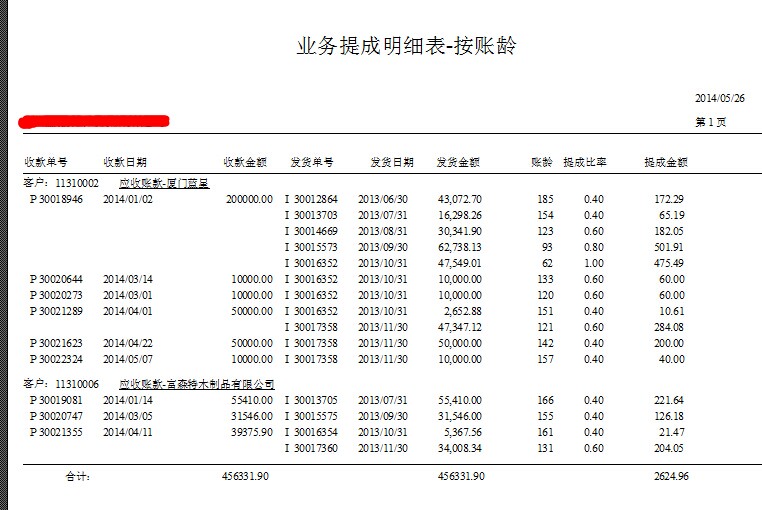 业务提成报表-按账龄