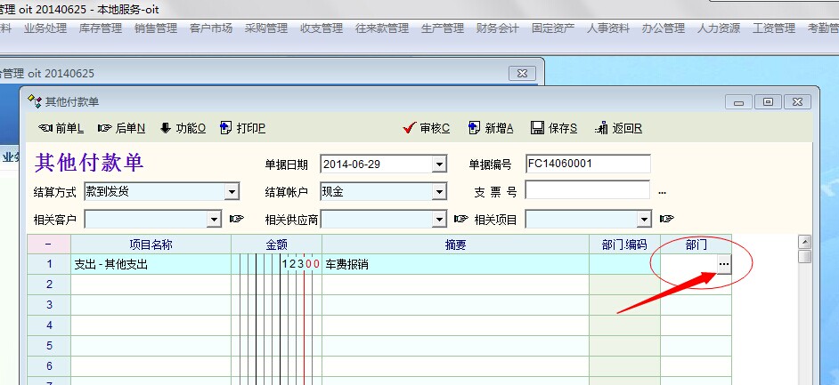老师可能没明白我的意思,是一张报销单里的费用分属不同的部门,比如水电费、房租、差旅费等,这些费用都是要按比例分摊到各个部门的,现有的模式下,因为一张其他收付款单只能录入一个部门,所以只能变通一下,分成几张其他付款单录入,这样工作效率就低了很多,而且很容易出错,也不利于查账。