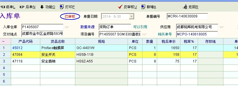 我的入库单里怎么没有单价税率这些?