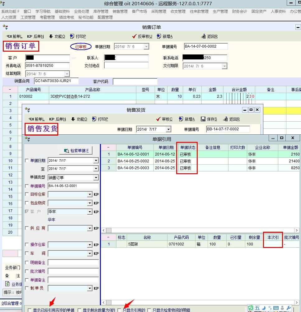 发现勾选“显示已经引用完毕的单据”,发现上一级的【销售订单】未必引用也搜索起来,不知是不是bug