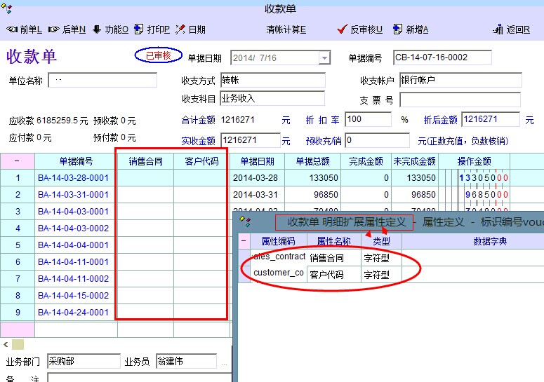 销售订单,定义两个【对象】字段,但在【收款单】【扩展属性】引用后,字段的值却调用不到,