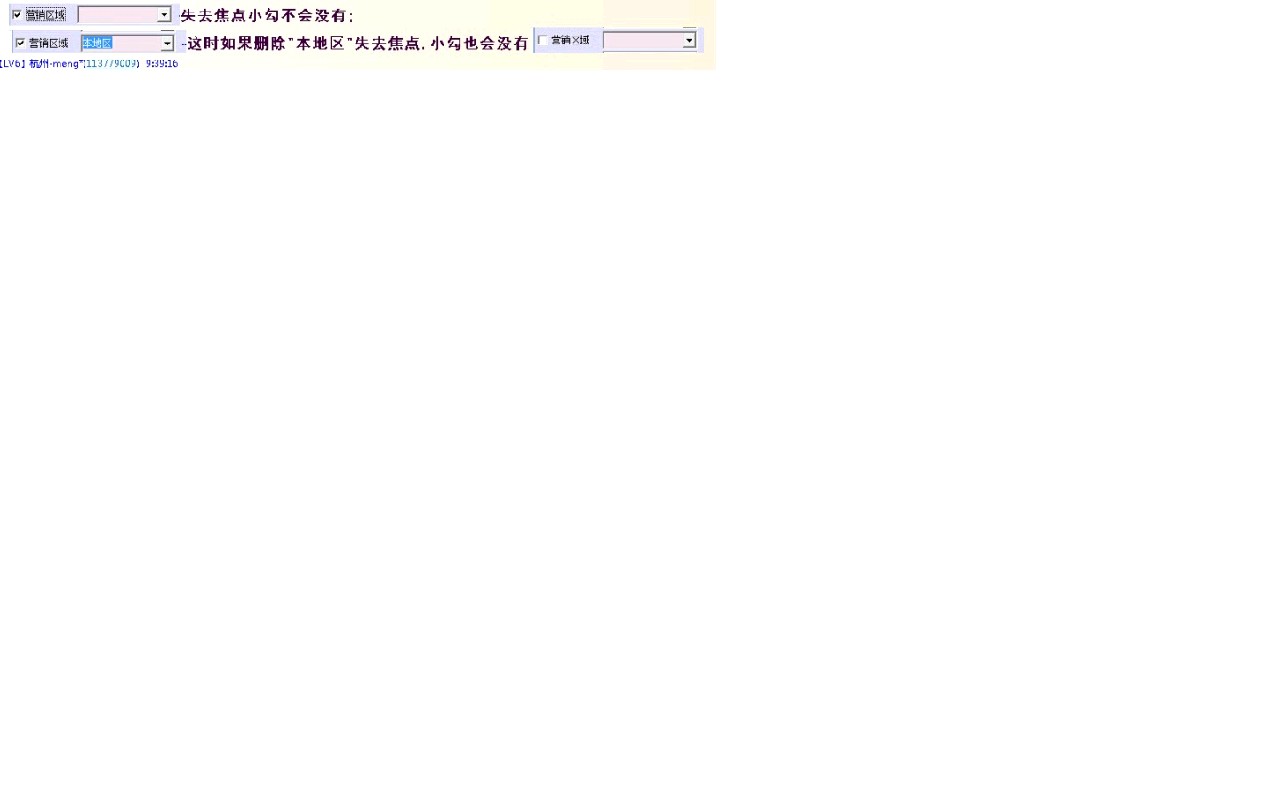 报表里条件选择的问题:(全部以营销区域为例)
