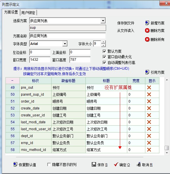 导出、保存供应商供资料时,即使选择完整保存也没法将应商扩展属性导出,供应商管理中也没法将供应商扩展属性通过列显示定义显示出来。