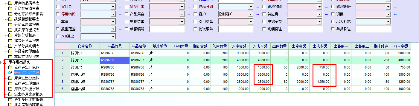 试过了,分库核算库存好像库存进出报表里是分仓核算的,其他基本上没有找到