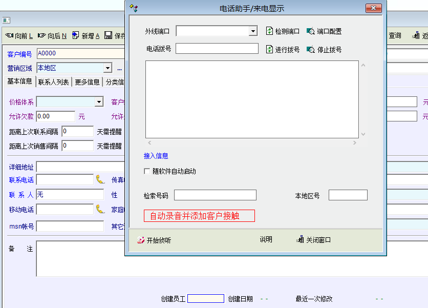 2、增加业务员拨打客户电话时自动录音并存储一条记录作为客户接触。