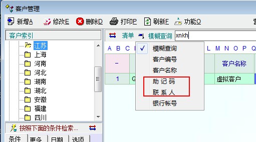 客户管理(供应商管理)中,没法通过联系人的助记码进行查询