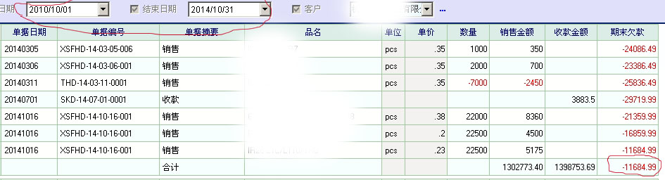 为什么同一个客户选取不同时间段期末欠款合计不一样. |