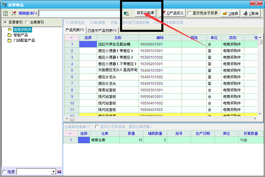 库存管理--选择产品检索--自定义检索--条件输入----你想要的结果