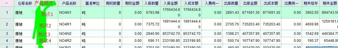 建议在库存进出报表中增加分仓批次汇总表,统计每一批次进出数量和金额,和期初期末数量和金额