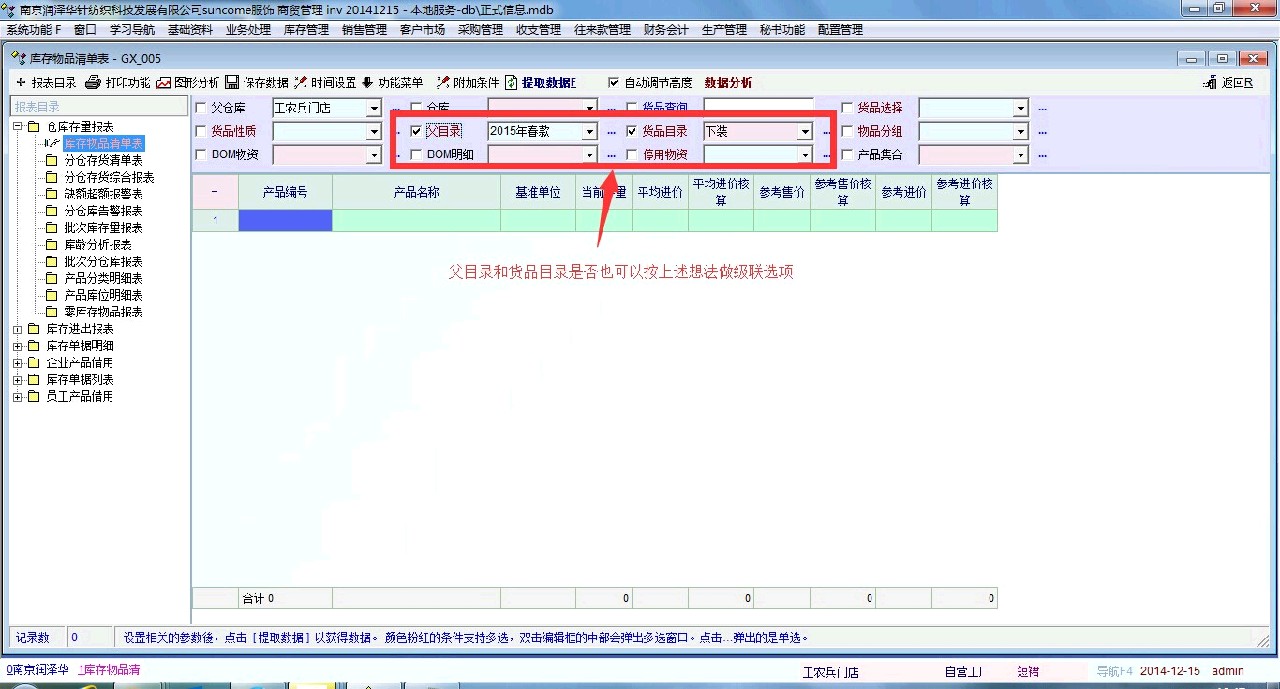 下面几个图主要是想表达父仓库、仓库,父目录、货品目录能否做成级联选项,谢谢。