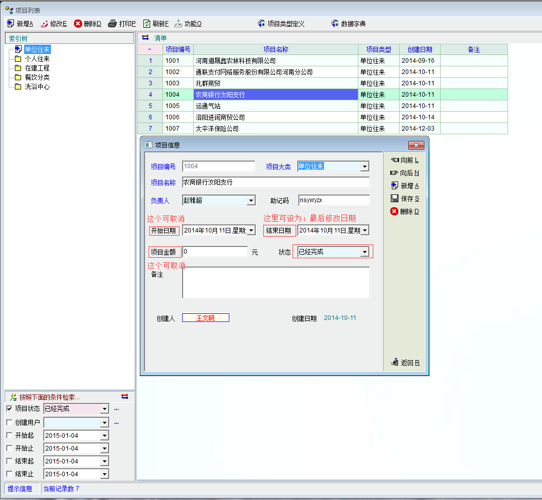 软件目前的核算项目设置进行了改进,扩展了功能,这点比较好。不过目前软件项目设置可能侧重于实际中的工程项目,对于一些自定义的核算项目,个别项目就不是太合适,建议将核算状态设置为:未使用 使用中 已停用,这样适应面就广一些。项目金额及项目日期就可以取消了。
