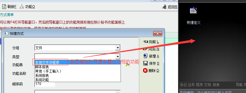 有些文档我们每天都要用到好多次,但每次打开都要先打开文档管理,再打开文档管理中文档所在的目录,然后再打开具体的文档,搞得心情好烦,能否在导航界面或小秘书中添加直接文档管理中的文档(或服务器端的文档)的功能?