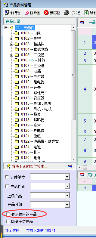 另外一个问题.原来在产品资料下面有一个显示停用的产品.我记得在哪里可以设置成一直选取,忘记在哪里设置了.请老师指导一下
