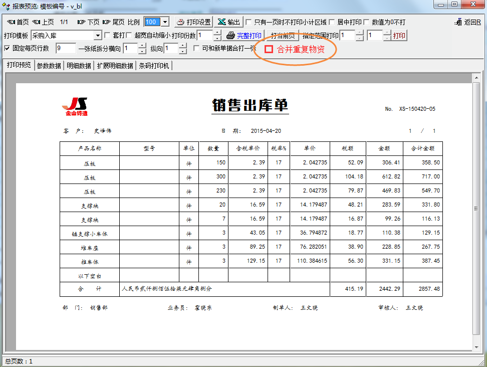 请教下xwb514,如何在打印模板中合并重复物资?脚本如何写呢?