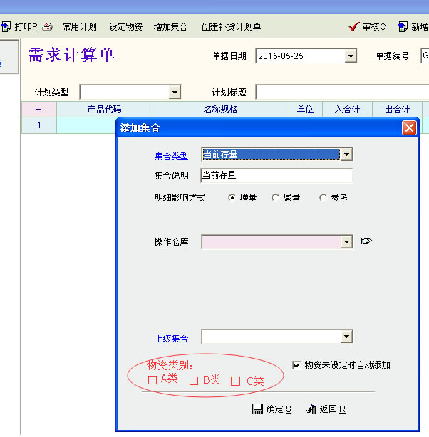 建议在产品资料里加入ABC分类信息,然后在需求计算单的集合里可以选择需要计算的物料的类别,这样可以满足企业对不同类别物料的关注,同时又兼顾工作效率。另外,脚本中也可以根据物料不同分类自行设计领料方式与批量。