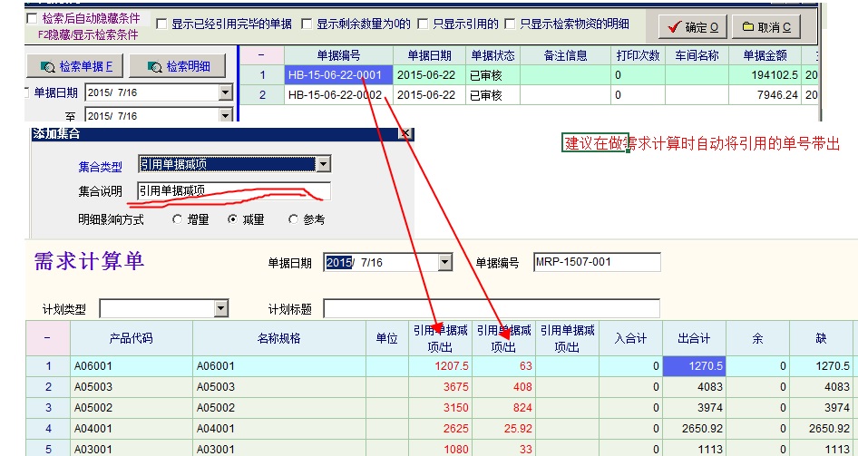 建议在做需求计算时自动将引用的单号带出
