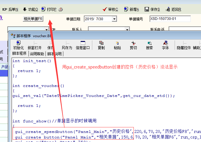 已经实现想要的功能,但在销售单中发现gui_create_button可以正常使用,但gui_create_speedbutton却失效了,是什么原因呢? |