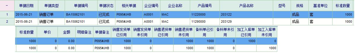 加工企业的产品工序是通过单据1--单据2---单据3 ,来实现工序1--工序2--工序3的作业流程。。 系统能否实现我产品的报表明细,就能直接看到单据1--单据2--单据3的引用和未引用情况。。 如果可以这样的话,一个产品的整条流水工序就很清晰的体现出来了。。 其实有点貌似执行树的功能,但是执行树只是一个大概的流转引用,明细还是体现不出来。 目前系统实现的是界面1+界面2+界面3的效果,都是有关联的,但是界面是独立的。 是否可以实现汇总的那种效果。 |