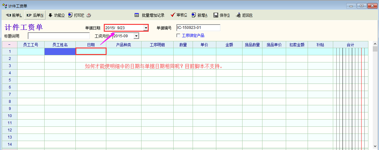 求助_计件录入单据如何使明细日期与单据日期相同?_产供销