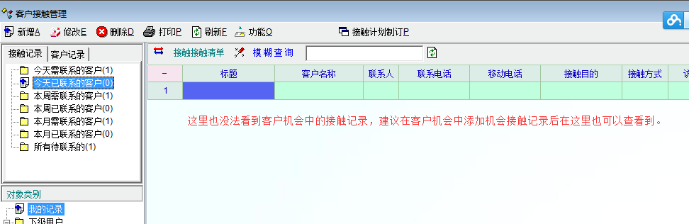 客户机会的接触记录本质上也是该客户的接触记录,系统采用的接触流水也是一样,但在该客户的客户接触记录中却没法查看到客户机会的接触记录,建议在客户接触记录中添加客户机会接触记录。