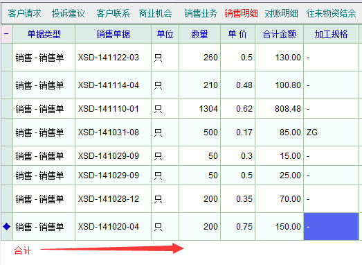 如图,建议为客户编辑“分类信息”中的“销售业务”、“销售明细”,供应商编辑“分类信息”中的“采购业务”、“采购明细”添加“合计”项,以便更全面的了解业务概况。