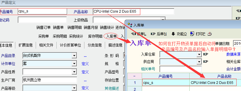 求助_如何在打开物资单据后自动将该产品编号或名称输入到物资单据的明细中?_产供销