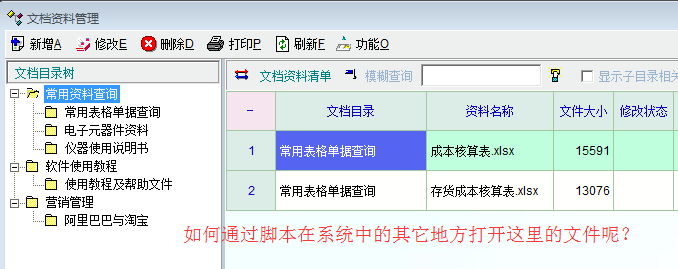 求助_如何才能通过脚本在系统中的其它地方打开文档资料管理中某一文档呢?_产供销