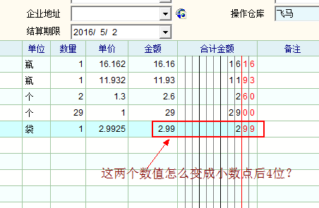 产品设置里只是单价设置了4位,金额只能取2位的,一方面是考虑到了合同,二是考虑了支付