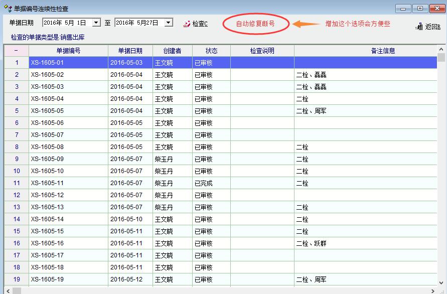 讨论_建议物资单据增加“自动修复断号”功能。_产供销