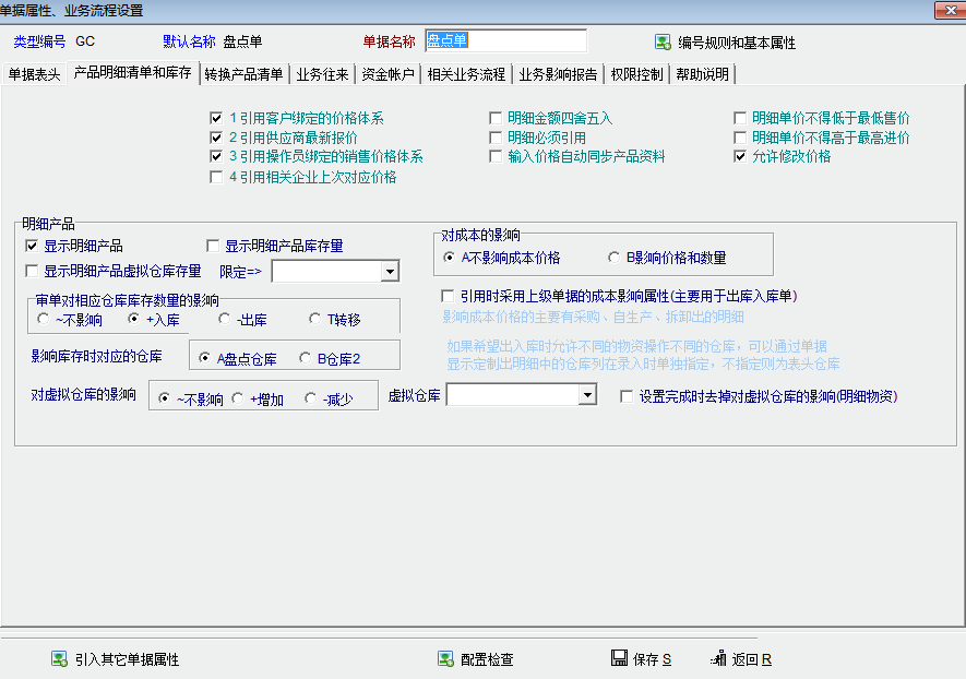 3.该单据已经配置了影响库存(我不知道对不对,我传个图你帮忙看下)