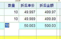 你把单价列、折扣都显示定制出来应该能看到规律,系统是从前往后算的。