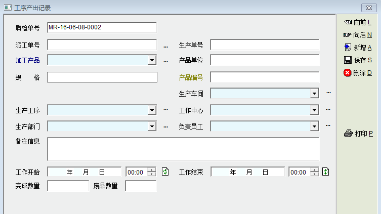 想法2:“工序产出”模块可以交由质检部输入,因为“工序产出”中只输入“任务单号”“生产单号”“完成数量”“废品数量”(其他的都可以不用输入)已经能够实现同步到“工序任务”生产派工单与生产单中。(真心的不错哦)员工的“完成数量”“废品数量”都以质检部输入的数据为准。(那么产出单号=质检单号)