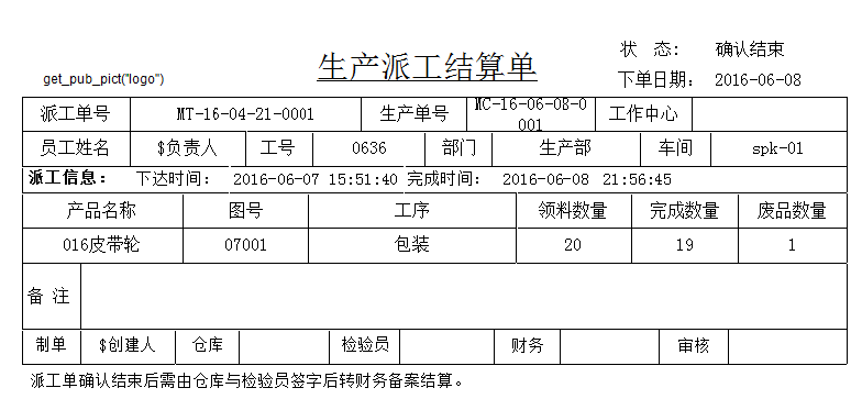 想法3:当“工序产出”模块中输入的“完成数量”+“废品数量”=“加工数量”(也就是上面说的仓库领料数量)时,“工序任务”(生产派工单)中自动结束,(当然,“完成数量”+“废品数量”肯定不能多余或者少于“加工数量”,要不后面没法核算)。自动生产结束后人工进行确认结束,然后转计件工资核算。