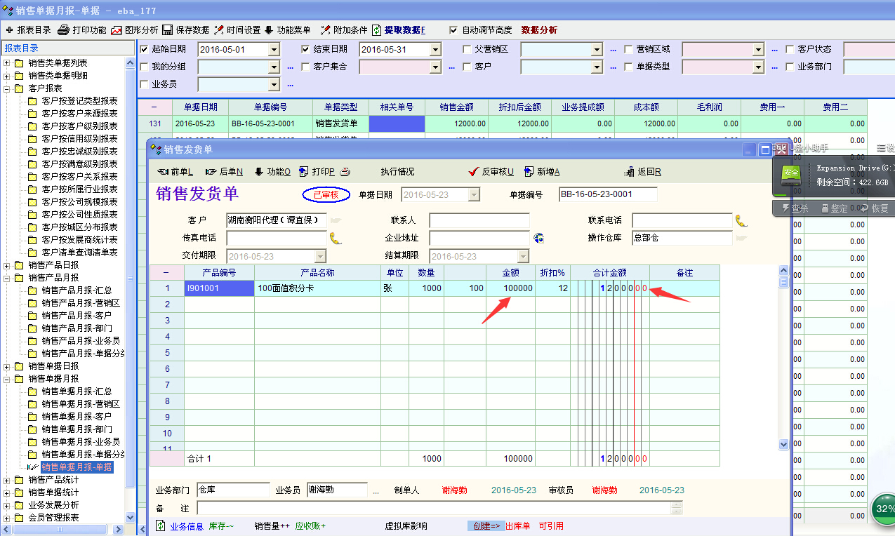 2、如果有一张带折扣的销售单,那么销售金额列应该没折扣前的金额。但目前报表折扣后金额与销售金额相等。