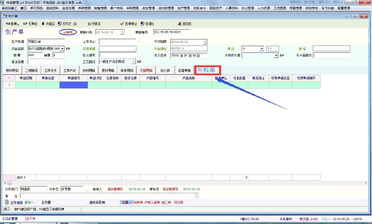 希望增加补料单进来,有退料必然也有补料的情况。