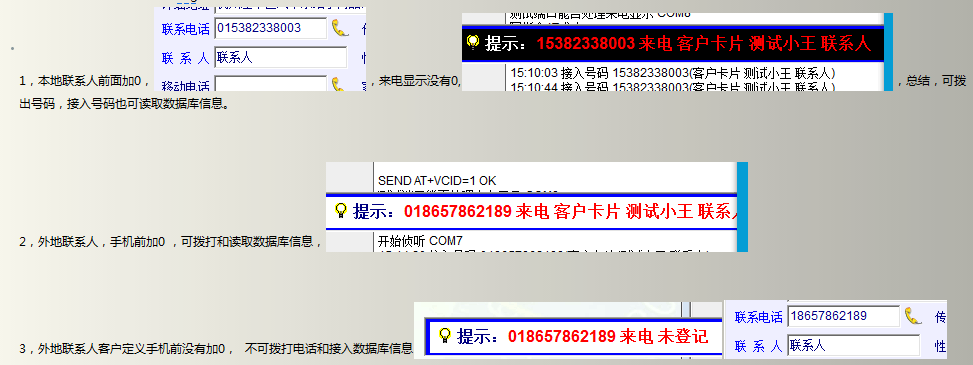 3,外地联系人客户定义手机前没有加0,  不可拨打电话和接入数据库信息