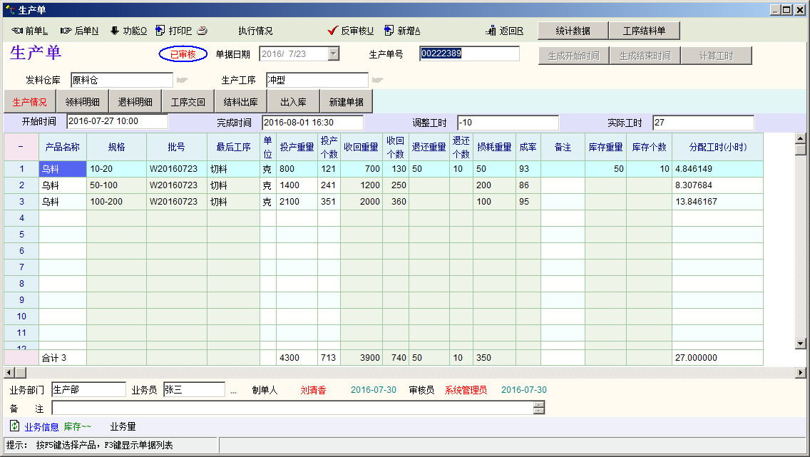 生产成本核算包括两方面,一个是材料出库的成本核算,一个是成品入库的成本核算。 材料出库的核算,其实就是成品BOM物料的成本相加,最好是最细一级BOM的成本相加,当然,进行过组成件半成品的成本处理也可以相加。 成品入库的核算,【材料成本】+制造人工费用+分摊费用 当然,制造费用也可以算到分摊费用中。 我上面的这个销售成本单,本质上就是成品入仓核算,只不过做的比较粗糙:不能进行合理的费用分摊,只能算个销售成本额的总数来参考,也没有办法反写到成品的成本单价中。(手工可以把销售费用和制造费用写到费用一和费用二,然后进行成品成本处理可以做到) 费用分摊有几部分:辅料费用(只要进行合理的领料方式,完全没问题)+人工工时成本(制造费用) 工具机台折旧费+水电费+其他一些费用 费用分摊也分:按工时比例分摊,按总数量分摊,按材料成本比例分摊,如果做了我上面的销售成本单,按总数量分摊是完全可以手工做到的。 -------------------------- 其实做这个设想,最根本的目的不是做成本核算,是想把计件工资和生产关联起来,把计件工资做的方便一点,规范一点。 一般现代的的中小工厂,对成本核算并没有那么高的要求,对企业管理软件比较急需的三个方面,一个是财务的应收应付,一个生产管理,一个就是计件工资。所在的厂一直的在找计件工资的软件,我推荐失败的原因就是,无法和生产关联起来。 oit对于生产管理的短板,我认为两个地方,一个是物料需求计算太过于复杂,二是少了补料单和制造费用单(委外费用和生产工时,计件)。 |