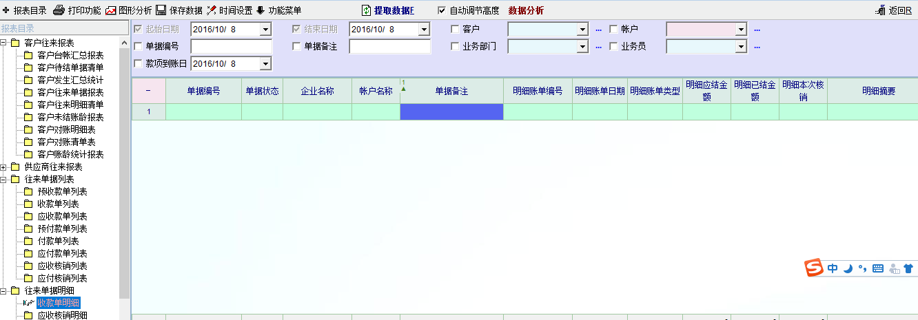 收款单明细表,可以看到 有明细的单据编号等信息 没有结算期限