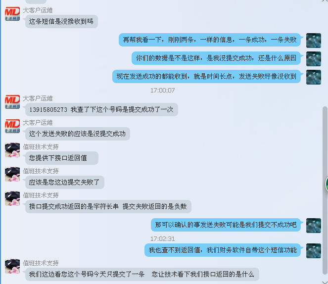 老师短信发送不成功,平台只收到一个提交,还有一次提交不成功,而且前面经常有提交不成功啊,测试好几次了,老师辛苦优化一下咯             或是怎么查看接口返回的是什么,我让短信平台解决一下咯