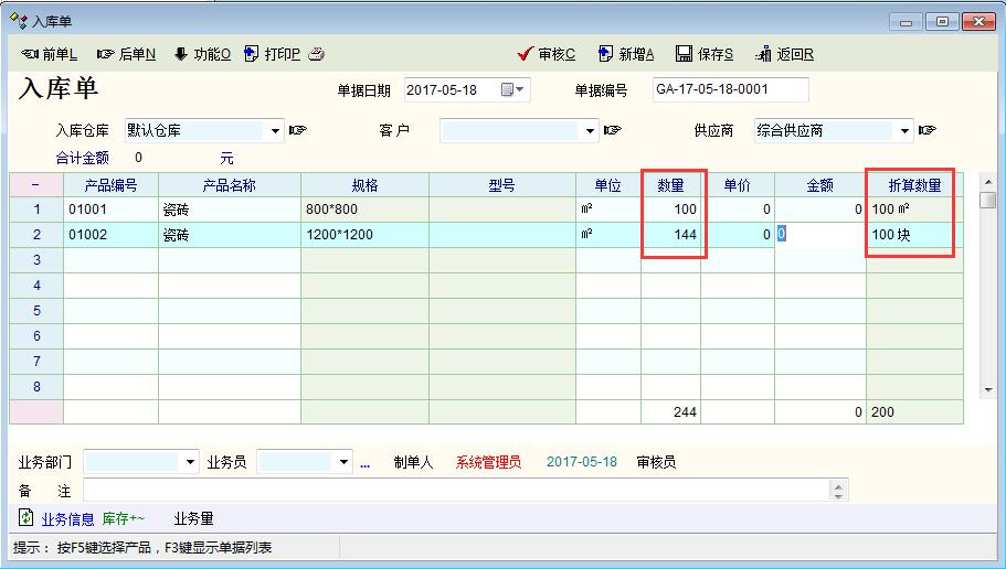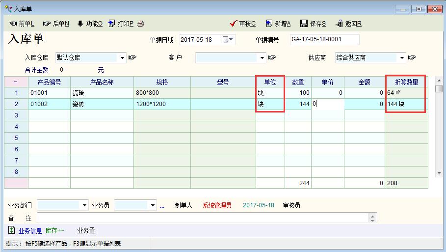 支持,除了瓷砖行业,其实很多情况会有这样的要求,如采购单位与仓存单位不同时就要这样的换算。显示为“块+㎡”,这样是直观,但不好汇总。
